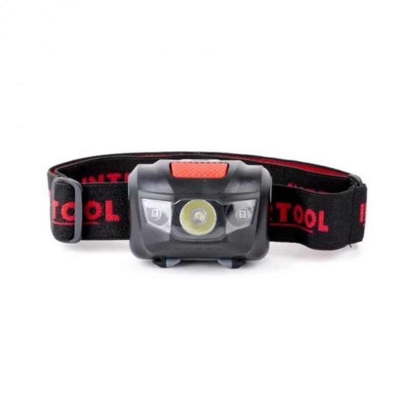 Ліхтарик налобний світлодіодний Intertool LB-0302 — налобний LED-ліхтар для локального освітлення робочої зони з кріпленням на регульованому еластичному ремені та поворотним корпусом для виставлення кута світла; джерело світла — 1 LED 1 W + 2 LED. світловий потік 80 лм. дальність освітлення до 60 м. передбачено 4 режими роботи. час автономної роботи до 10 год (залежить від режиму та елементів живлення). живлення від 3×AAA. корпус заявлений як пиловологозахищений з антикорозійним захистом. маса близько 0.07 кг.